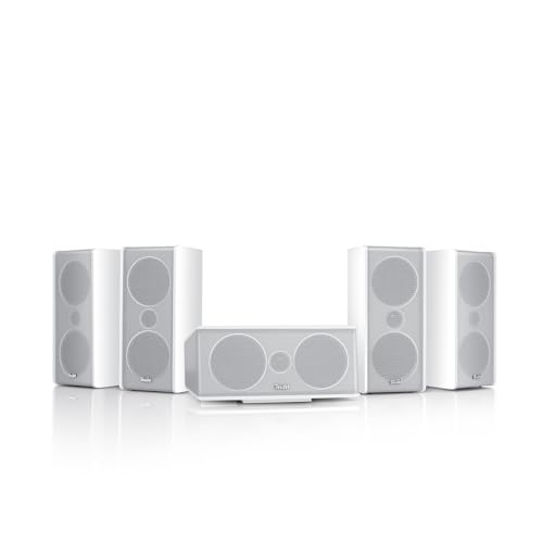 Appena aperta la confezione, il Teufel Consono 35 si presenta con un look sobrio ma moderno. I cinque altoparlanti satelliti (quattro identici per fronte e retro, più un canale centrale orizzontale) sono compatti e realizzati in una robusta plastica ABS, con griglie metalliche a protezione dei driver. Non aspettatevi materiali pregiati come il legno, ma l'assemblaggio è solido e trasmette una buona sensazione di durabilità. Le dimensioni contenute dei satelliti li rendono facili da posizionare in qualsiasi ambiente, sia su mensole che montati a parete grazie alla predisposizione integrata.