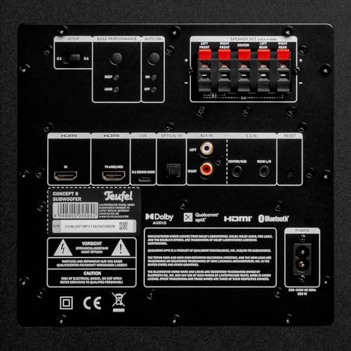 Il vero protagonista, almeno in termini di stazza, è il subwoofer attivo Concept 8. A differenza di altri sistemi, qui il subwoofer non è solo un "cannone" per i bassi, ma è il cuore pulsante dell'intero impianto. Al suo interno, infatti, ospita un ricevitore AV multicanale 5.1. Questa è una caratteristica chiave: non avrete bisogno di acquistare un sintoamplificatore separato, risparmiando spazio e denaro. Il design del sub è essenziale, un cubo nero (o bianco, a seconda della versione) pensato per essere posizionato in un angolo della stanza.