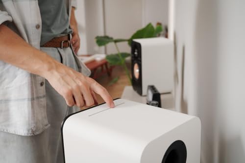 Sulla parte superiore del diffusore master troviamo un elegante Touch Slider per il controllo del volume e della riproduzione, un dettaglio moderno che si integra bene con l'aspetto classico. È presente anche un piccolo ma chiaro display OLED dimmerabile che mostra la sorgente selezionata e altre informazioni utili. La confezione include anche le griglie magnetiche per chi preferisce un look più discreto. Il subwoofer T10, dal canto suo, è un cubo imponente con un woofer da 250 mm, progettato per essere versatile: può essere utilizzato sia in configurazione front-fire che down-fire.