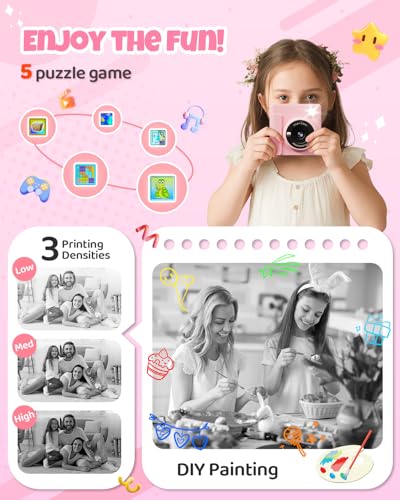 La fotocamera offre anche diverse funzioni creative per aumentare il divertimento. Sono presenti cornici, filtri ed effetti da applicare alle foto prima dello scatto. In alcuni modelli sono inclusi anche dei semplici giochi e un lettore musicale, trasformando il dispositivo in un piccolo centro di intrattenimento portatile. È anche possibile scegliere se stampare ogni foto scattata o disattivare la stampa automatica per usarla come una normale fotocamera digitale.