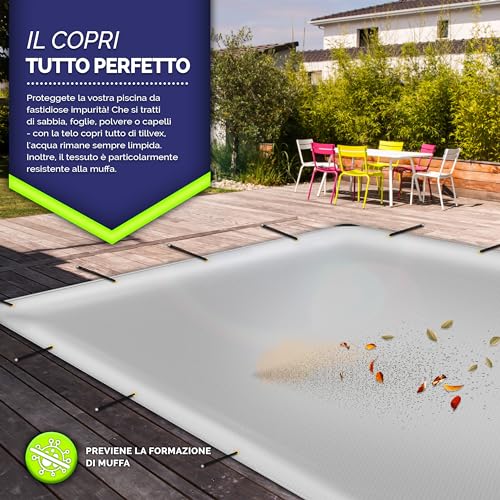 - Versatilità d'uso: Dalla protezione dei mobili da giardino alla copertura di veicoli, piscine o materiali edili, la sua applicazione è quasi illimitata.