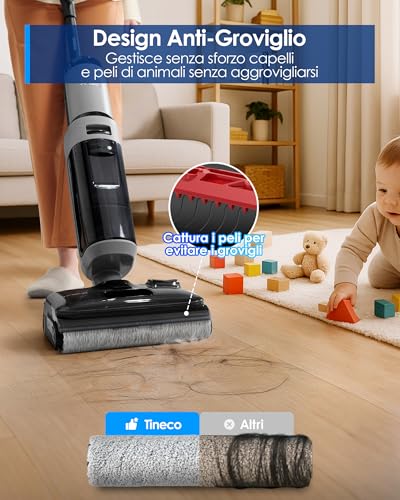 Il cuore di questo dispositivo è la sua capacità di combinare aspirazione e lavaggio. Il Tineco iFLOOR 5 Breeze Complete è progettato per funzionare su tutti i tipi di pavimenti duri sigillati, come piastrelle, marmo, laminato e legno. Grazie alla sua potenza di 190W, affronta senza problemi lo sporco quotidiano, dalle briciole ai peli di animali, fino ai liquidi rovesciati e alle macchie più appiccicose.
