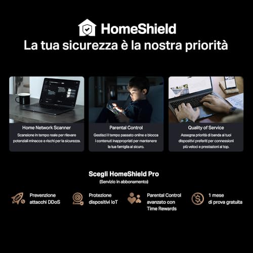 - Funzionalità di sicurezza avanzate richiedono un abbonamento a pagamento (HomeShield Pro).