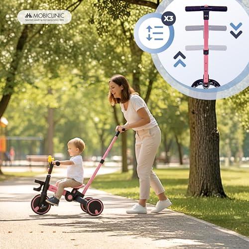 - Modalità 1: Triciclo con maniglione e pedali bloccati. Ideale per i più piccoli (dai 18 mesi), questa modalità permette al genitore di avere il pieno controllo. Il maniglione di spinta è regolabile in altezza (da 66 cm a 91 cm), un'ottima caratteristica per adattarsi alla statura di mamma e papà. La guida è fluida su superfici lisce come asfalto o pavimenti interni.