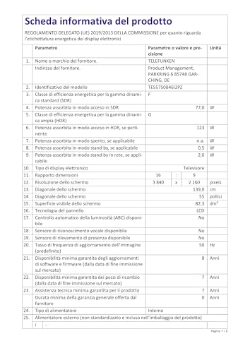 In conclusione, il TELEFUNKEN TE32550M5F1W è un televisore onesto, che mantiene ciò che promette. È la scelta perfetta per chi cerca un prodotto semplice, affidabile e funzionale senza spendere una fortuna. La buona qualità dell'immagine per la visione di tutti i giorni, unita a un sintonizzatore aggiornato e a una connettività essenziale, lo rendono un acquisto intelligente. Se non avete bisogno di funzionalità smart avanzate e il vostro obiettivo è avere un secondo televisore per la camera, la cucina o la casa delle vacanze, questo modello rappresenta una delle opzioni più interessanti sul mercato per il suo eccellente rapporto qualità-prezzo.