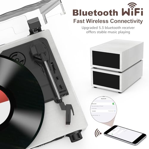 La caratteristica che rende questo giradischi Udreamer davvero moderno è la sua ampia connettività. La funzione più apprezzata è senza dubbio il Bluetooth 5.3 in ingresso. Questo significa che potete collegare il vostro smartphone, tablet o laptop al giradischi e usare i suoi altoparlanti per riprodurre la vostra musica digitale preferita da servizi di streaming o dalla vostra libreria personale. È importante sottolineare che si tratta solo di un ricevitore Bluetooth: non è possibile, quindi, trasmettere il suono del vinile a delle casse o cuffie Bluetooth esterne.