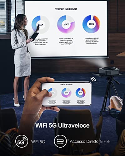 A livello di connettività wireless, il proiettore supporta il WiFi 5G dual-band, che garantisce uno streaming più stabile e veloce da smartphone o altri dispositivi compatibili tramite Miracast o AirPlay. L'interfaccia utente (UI) è semplice e intuitiva, facile da navigare.