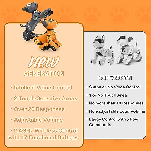 Telecomando a 2,4 GHz: Il telecomando è intuitivo e permette di controllare ogni movimento del cane: avanti, indietro, destra e sinistra. La tecnologia a 2,4 GHz garantisce un segnale stabile e senza interferenze, permettendo di guidare il robot con precisione. Dal telecomando è possibile anche attivare le funzioni speciali come la musica, la danza e la modalità "seguimi".