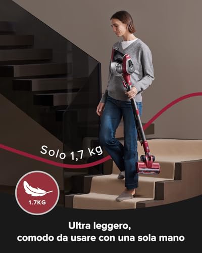 La prima impressione è quella di un prodotto ben assemblato e sorprendentemente leggero. Con un peso di circa 1,7 kg, risulta maneggevole e facile da usare anche per le pulizie in altezza o per chi ha difficoltà a sollevare pesi. Il design è moderno e funzionale, con un'asta telescopica regolabile che permette di adattare l'aspirapolvere alla propria statura, migliorando l'ergonomia e riducendo l'affaticamento durante l'uso.