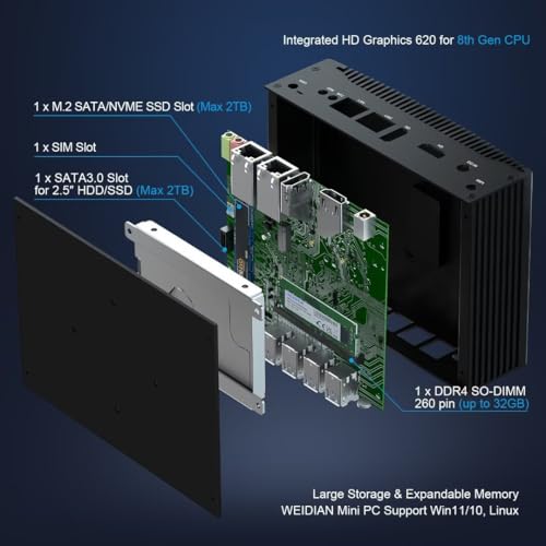 Il WEIDIAN PC Fanless Mini PC Industriale i5 8260U è un prodotto di nicchia che eccelle nel suo campo. Non è il mini PC per tutti, ma per chi cerca una macchina silenziosa, incredibilmente affidabile e con una connettività da primo della classe, è una scelta quasi obbligata. La sua costruzione robusta, unita a caratteristiche professionali come le porte RS232 e la doppia LAN, lo rendono perfetto per l'industria, l'automazione, gli uffici che richiedono massima affidabilità e per gli appassionati che vogliono creare un server domestico a prova di bomba. Sebbene il processore non sia l'ultimo modello sul mercato, offre un equilibrio perfetto tra prestazioni e gestione termica in un design passivo. Un computer costruito per lavorare senza sosta e in silenzio, un vero mulo da soma in un formato compatto.