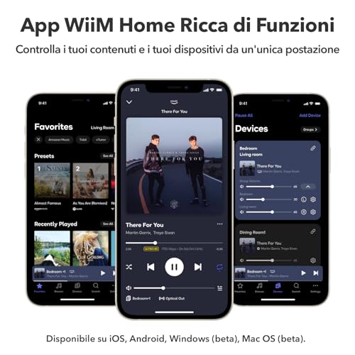 Il WiiM Ultra supporta praticamente tutti i principali servizi e protocolli di streaming. Troviamo infatti Spotify Connect, TIDAL Connect, Chromecast Audio, DLNA, Roon Ready (in attesa di certificazione finale) e l'integrazione con assistenti vocali come Alexa e Google Assistant. L'unica assenza di rilievo, rispetto ai modelli precedenti, è quella di AirPlay 2, una mancanza che potrebbe farsi sentire per gli utenti più integrati nell'ecosistema Apple. La funzionalità multi-room è un altro punto di forza, permettendo di creare un sistema audio diffuso in tutta la casa sincronizzando l'Ultra con altri dispositivi WiiM, Amazon Echo o Google Home.
