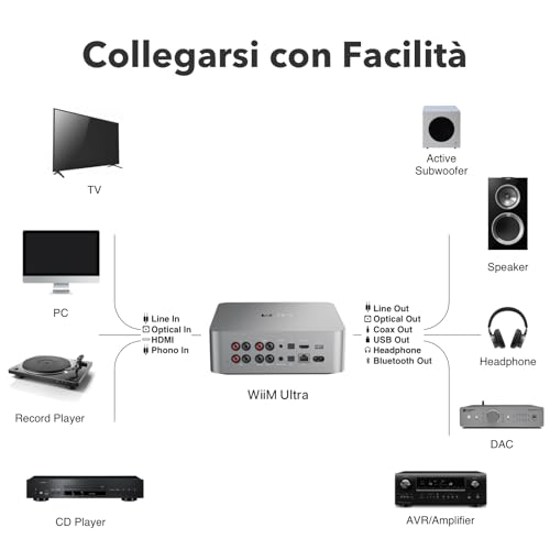 Ma l'estetica è solo l'inizio. Il WiiM Ultra è stato progettato per essere il centro nevralgico di qualsiasi sistema audio, moderno o vintage. La sua versatilità è il suo cavallo di battaglia: può connettersi praticamente a qualsiasi cosa, da un giradischi a un televisore, da diffusori attivi a un amplificatore tradizionale, fino alle cuffie. Questa flessibilità lo rende la soluzione ideale sia per l'audiofilo esperto che cerca di integrare lo streaming nel proprio sistema, sia per il neofita che desidera costruire un impianto hi-fi di qualità partendo da zero.
