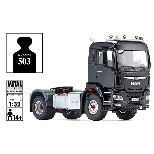 Oltre all'estetica, il WIKING MAN TGS 18.510 è pensato per essere funzionale all'interno di un diorama in scala 1:32. Il gancio di traino posteriore è pienamente compatibile con i rimorchi della vasta gamma agricola di WIKING, permettendo di creare convogli realistici e affascinanti. La ralla, dotata di una leva di bloccaggio, è progettata per agganciare semirimorchi della stessa scala, ampliando ulteriormente le possibilità di utilizzo. Gli pneumatici, con il loro battistrada tassellato da "tuttoterreno", sono perfetti per l'anima 4x4 di questo trattore.