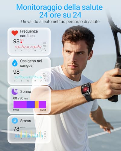 Il display da 1.85 pollici è uno dei punti di forza di questo smartwatch. Si tratta di un pannello LCD touchscreen con colori vividi e una buona luminosità, che lo rende leggibile anche sotto la luce diretta del sole. La sensibilità al tocco è reattiva e l'interfaccia utente, gestita tramite l'app companion (spesso "Da Fit" o simili), è abbastanza intuitiva. Navigare tra i menu e le varie funzioni è semplice, anche se la quantità di modalità sportive (spesso oltre 100) può richiedere un po' di pazienza per trovare quella desiderata. È possibile personalizzare il quadrante scegliendo tra centinaia di stili disponibili sull'app o caricando una propria foto, un tocco di personalizzazione sempre gradito.