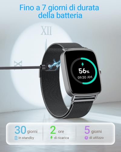 L'autonomia è un aspetto cruciale per uno smartwatch. I produttori dichiarano spesso fino a 7 giorni di utilizzo con una singola carica e circa 30 giorni in standby. Nell'uso reale, con notifiche attive e monitoraggio della salute costante, è più realistico aspettarsi un'autonomia di 3-5 giorni, che resta comunque un buon risultato. La ricarica completa avviene in circa due ore. La certificazione di impermeabilità (solitamente IP67 o IP68) garantisce la resistenza a sudore, pioggia e immersioni accidentali, come durante il lavaggio delle mani o una doccia. È comunque sconsigliato l'uso in acqua calda, saune o per immersioni prolungate.