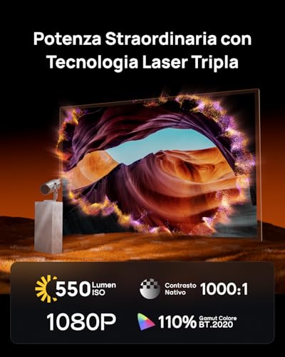 La luminosità dichiarata è di 400 ISO Lumen. Questo valore si traduce in una buona performance in ambienti bui o con luce controllata. Si possono raggiungere senza problemi dimensioni di 80-100 pollici con una qualità d'immagine più che soddisfacente per una serata cinema in casa. Tuttavia, è importante essere realistici: in una stanza ben illuminata, la luminosità non è sufficiente e l'immagine apparirà sbiadita e poco contrastata. È un limite comune a quasi tutti i proiettori di questa categoria, ma va tenuto in considerazione. Il contrasto è discreto, ma non eccezionale; i neri non sono profondissimi, risultando più simili a un grigio scuro.