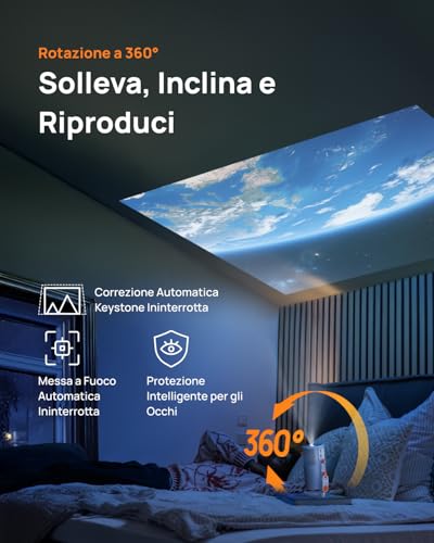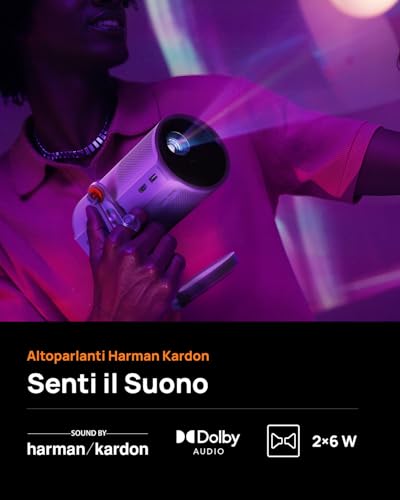 Questo significa che se sul muro c'è un quadro, un interruttore o una pianta, il proiettore adatterà automaticamente le dimensioni e la posizione dell'immagine per proiettarla nello spazio libero disponibile. Se sposti il proiettore, anche solo di poco, il sistema si ricalibra in pochi secondi. Questa funzione è davvero notevole e rende l'esperienza d'uso fluida e priva di frustrazioni, specialmente per chi non ha una postazione fissa e lo sposta spesso.