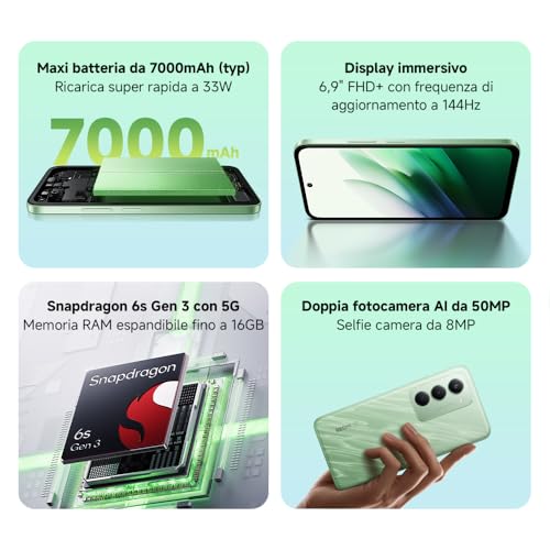 A muovere il tutto troviamo il processore Qualcomm Snapdragon 7s Gen 2, un SoC a 4nm che si colloca nella fascia media superiore. Accompagnato da 8 o 12 GB di RAM e 256 o 512 GB di memoria interna (purtroppo non espandibile), offre prestazioni solide e scattanti per l'uso di tutti i giorni. La navigazione tra le app è fluida, il multitasking non crea problemi e l'esperienza generale è molto piacevole. Anche nel gaming si difende bene, pur non essendo un "mostro" di potenza come i top di gamma. Riesce a far girare la maggior parte dei titoli senza grossi affanni, a patto di non pretendere sempre le impostazioni grafiche al massimo.