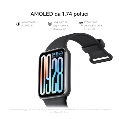 Il display è senza dubbio uno dei punti di forza di questa smart band. Il pannello AMOLED da 1.74 pollici, con una risoluzione di 336 x 480 pixel e una densità di 336 PPI, offre immagini nitide e colori brillanti. La vera novità è la luminosità di picco che raggiunge i 1200 nit, un valore notevole che garantisce una leggibilità eccellente anche sotto la luce diretta del sole. A questo si aggiunge una frequenza di aggiornamento di 60 Hz che assicura una fluidità impeccabile nella navigazione tra i menu e le notifiche.