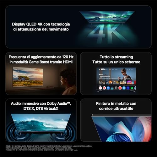 - Qualità dell'immagine superiore alla media grazie al pannello QLED VA
