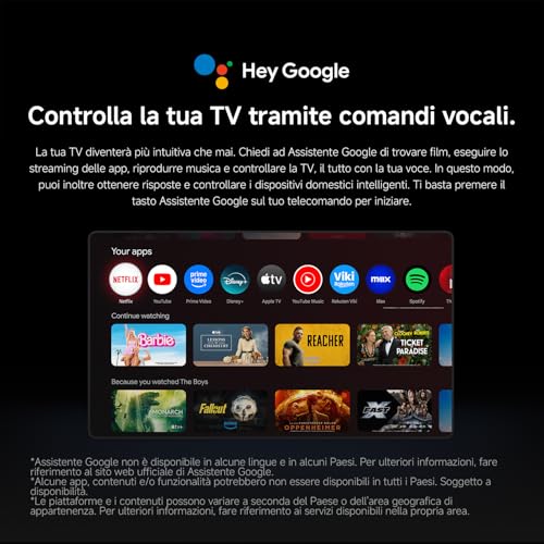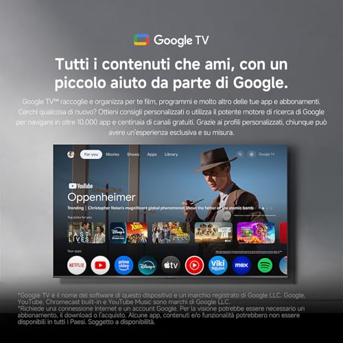 - Sistema operativo Google TV completo e facile da usare