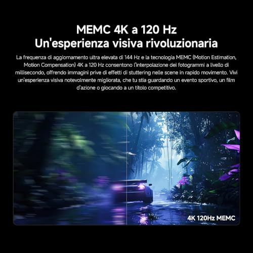 Uno dei punti di forza di questo modello è senza dubbio la frequenza di aggiornamento a 144Hz, una caratteristica particolarmente apprezzata dai videogiocatori. Grazie al supporto per HDMI 2.1, VRR (Variable Refresh Rate) e AMD FreeSync Premium, l'esperienza di gioco su console di nuova generazione e PC è estremamente fluida, priva di tearing e con un input lag ridotto. La luminosità di picco di 1200 nits assicura un'ottima resa dei contenuti in HDR10+ e Dolby Vision, rendendo le scene luminose brillanti e dettagliate.