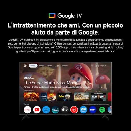 - Sistema operativo Google TV fluido e ricco di app