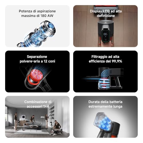 Il cuore pulsante del G20 Max è il suo motore brushless ad alta velocità, capace di generare una potenza di aspirazione massima di 180 Air Watt. Questo dato, che rappresenta un incremento del 20% rispetto al modello precedente, si traduce in una capacità notevole di rimuovere polvere ostinata, briciole e, soprattutto, i tanto odiati peli di animali domestici. Nell'uso pratico, questa potenza si fa sentire, specialmente su tappeti e moquette, dove lo sporco tende ad annidarsi più in profondità.