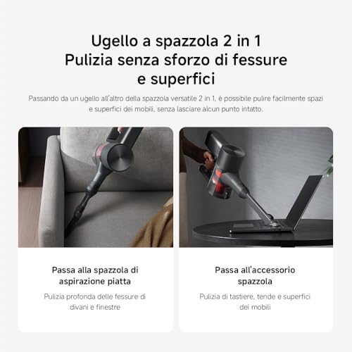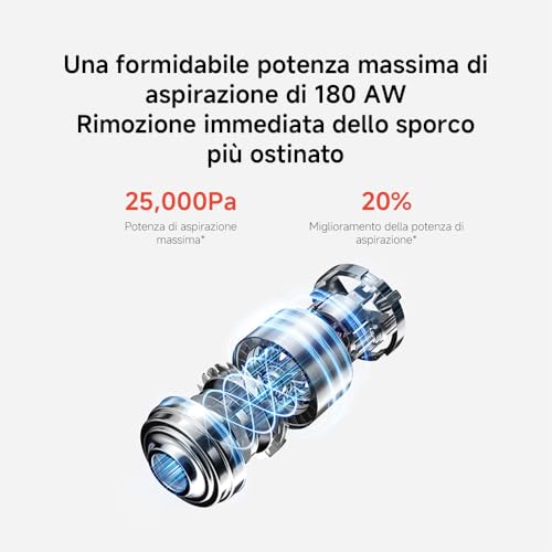 Xiaomi ha posto grande attenzione anche alla qualità dell'aria reimmessa nell'ambiente. Il G20 Max vanta un sistema di filtrazione a 5 stadi, che include una tecnologia di separazione a 12 coni ciclone. Questo sistema avanzato cattura fino al 99,9% delle particelle fini fino a 0,3μm, garantendo che l'aria in uscita sia pulita e purificata. I filtri, inoltre, sono lavabili, un dettaglio non da poco che contribuisce a ridurre i costi di gestione e l'impatto ambientale.