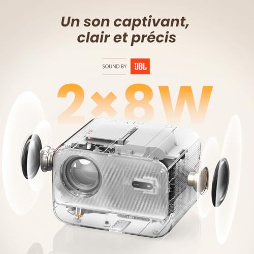 Ed eccoci a quello che, probabilmente, è il vero elemento distintivo di questo proiettore: il comparto audio curato da JBL. I due altoparlanti stereo integrati, spesso da 8W o 10W a seconda del modello specifico, offrono una qualità sonora che sorprende e supera di gran lunga le aspettative. L'audio è potente, chiaro e ben bilanciato, con bassi presenti che aggiungono profondità all'esperienza.