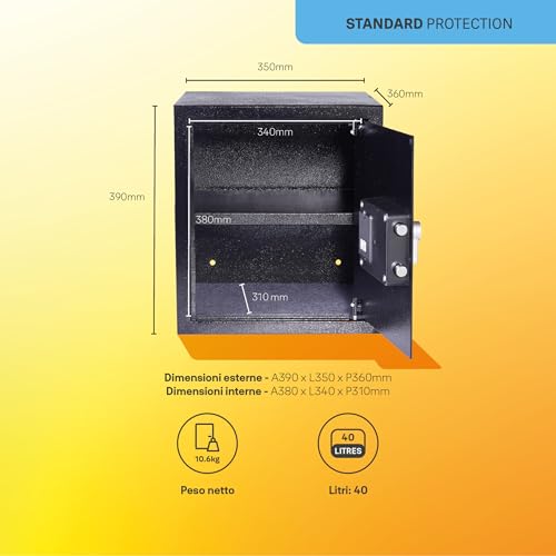 La caratteristica distintiva, però, è l'allarme integrato da 130 dB. Questo si attiva in due scenari: se la cassaforte subisce urti o tentativi di forzatura, oppure dopo l'inserimento di 3 codici PIN errati consecutivi. Una volta scattato, l'allarme suona per un minuto, un tempo sufficiente per attirare l'attenzione e, nella maggior parte dei casi, mettere in fuga i ladri. Dopo i tentativi errati, la tastiera si blocca temporaneamente, impedendo ulteriori manomissioni.