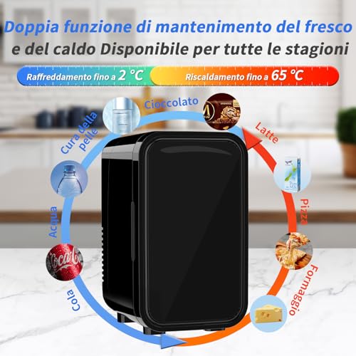 Il vero punto di forza di questo mini frigo è la sua doppia funzionalità: non solo raffredda, ma riscalda anche! Grazie al sistema termoelettrico (basato sulla tecnologia delle celle di Peltier), è in grado di abbassare la temperatura interna fino a circa 15-20°C in meno rispetto a quella ambiente, ma anche di portarla fino a un massimo di circa 60-65°C. Questa versatilità lo rende utile in tantissime situazioni.