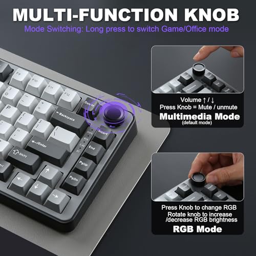 L'illuminazione RGB della B75 PRO è vivace e ben diffusa, grazie ai LED orientati a sud (south-facing) che evitano interferenze con i keycaps a profilo Cherry. Sono disponibili oltre 20 effetti di luce preimpostati, facilmente selezionabili tramite scorciatoie da tastiera. La manopola multifunzione può essere utilizzata anche per regolare la luminosità o cambiare effetto, rendendo la personalizzazione immediata.